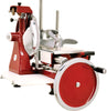 Designed in brilliant red with nostalgic appeal, our Manual Volano Slicer is an eye-catching addition to any restaurant. This unit is fully hand operated, simple to maintain and operate, and built for durability and consistent slicing - making it ideal for prosciutto. The built-in blade sharpener keeps the blade sharp for efficient cutting. The slicer is equipped with a protection ring around the blade to meet CE standards.