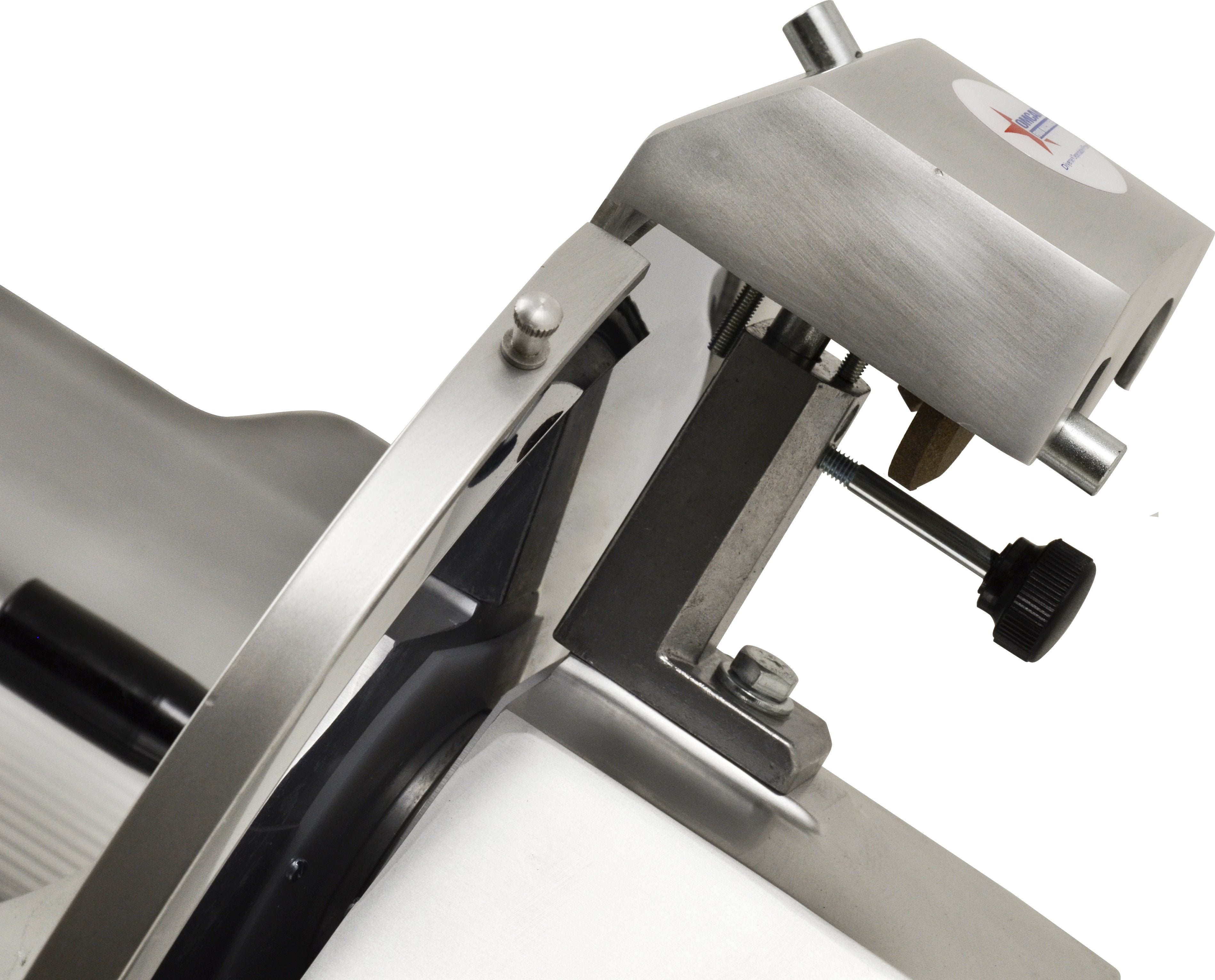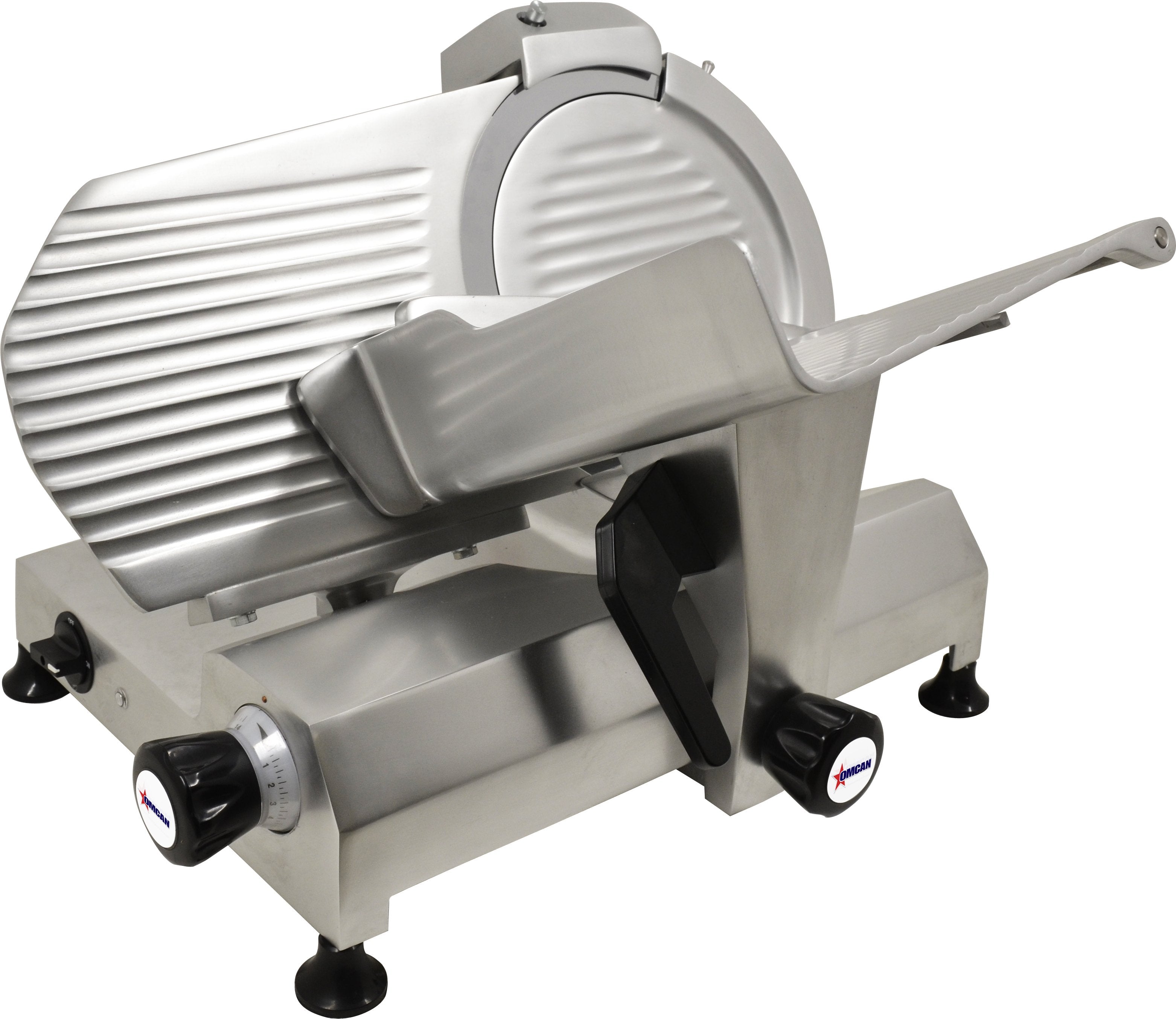 This slicer offers a high horsepower motor and dependable belt drive, offering increased slicing capabilities. This unit is suited for sub shops, supermarkets, and demanding restaurant applications. The 12” blade offers a large cutting capacity. This slicer has an anodized aluminum alloy body. The high carbon steel blade is hard-chromed, with a hollow ground taper for extended sharpening and blade life. This belt-driven machine offers exceptional cutting consistency and durability. The carriage moves smoothly on ball bearings allowing effortless cutting of deli meats and vegetables. Easy to disassemble for quick cleaning.