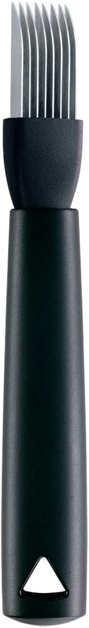 Create perfect vegetable garnishes effortlessly with the Triangle Green Grip 8-Blade Cutter. Designed with eight parallel stainless steel blades, this tool allows you to slice pickles, green onions, leeks, and other long vegetables into uniform thin strips in a single motion. Ideal for decorative plating, salads, sushi toppings, and creative garnishes, it delivers speed and precision while the comfortable GreenGrip handle ensures easy and controlled use. Durable, efficient, and dishwasher-safe, it’s a must-have for chefs and home cooks who enjoy professional-style presentation.