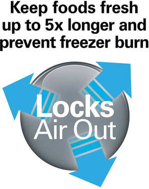 Long-lasting freshness: Locks air out to keep food fresher up to 5 times longer and prevents freezer burn.