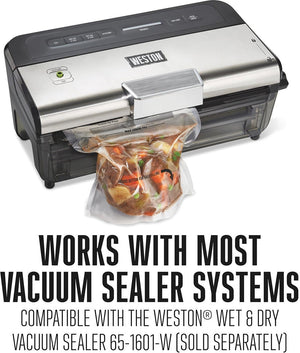 Can be used with Weston Wet & Dry Vacuum Sealer 65-1601-W (sold separately) and many other heat seal vacuum sealing systems.