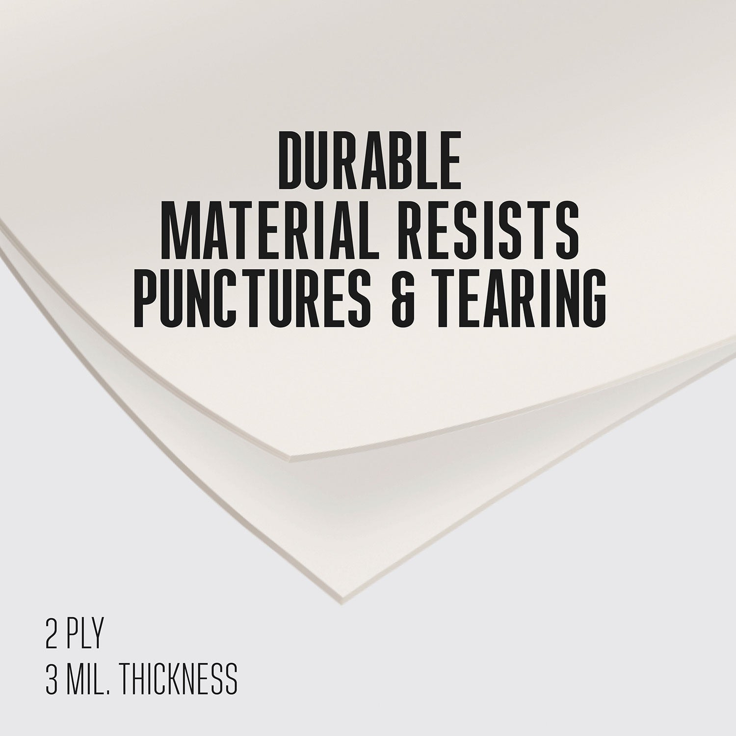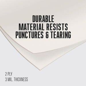Made of durable 2-ply, 3 mil thick material that resists tears and punctures.