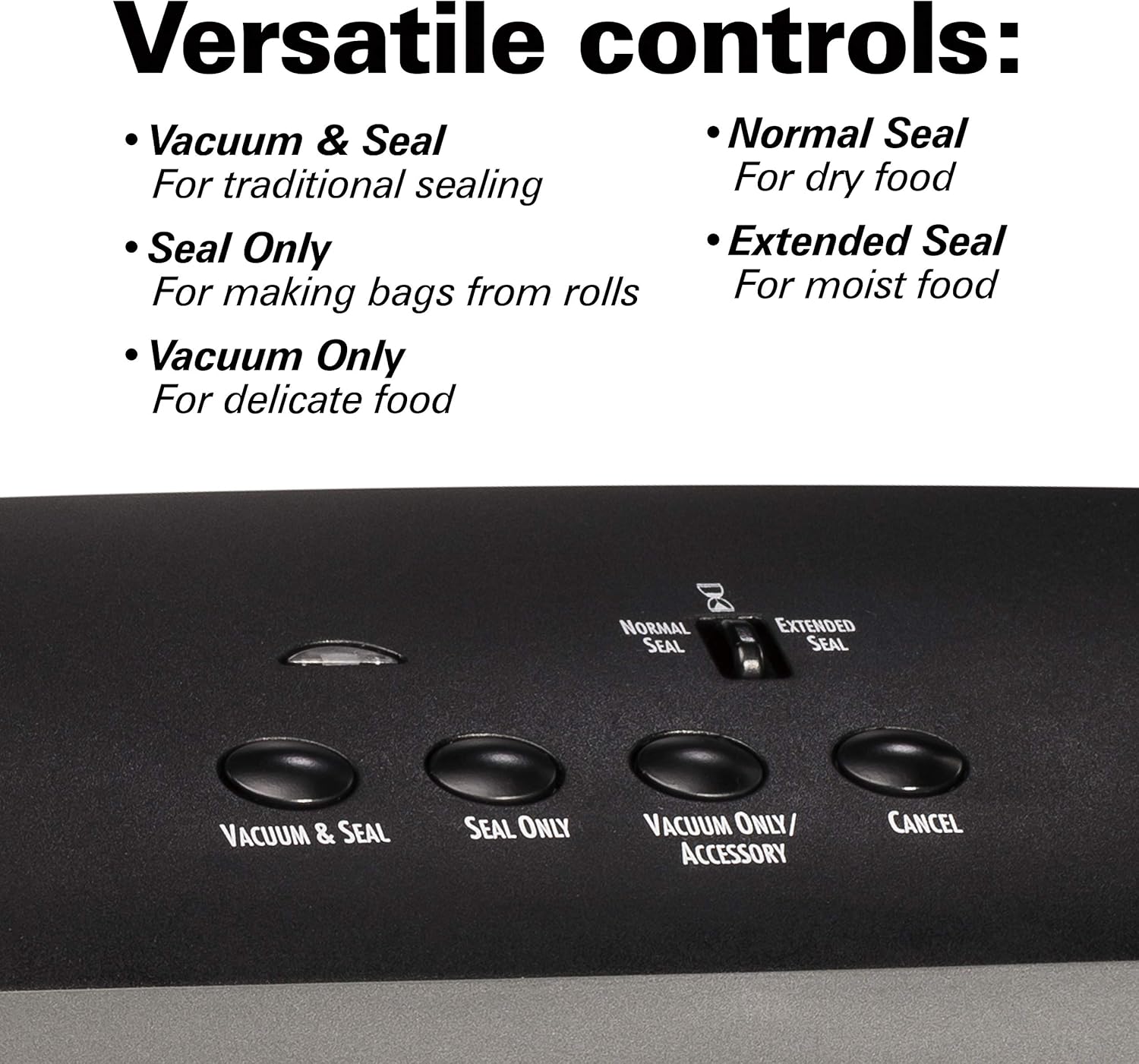 - Powerful Vacuum Performance: Effectively removes air from bags to preserve freshness and prevent spoilage.