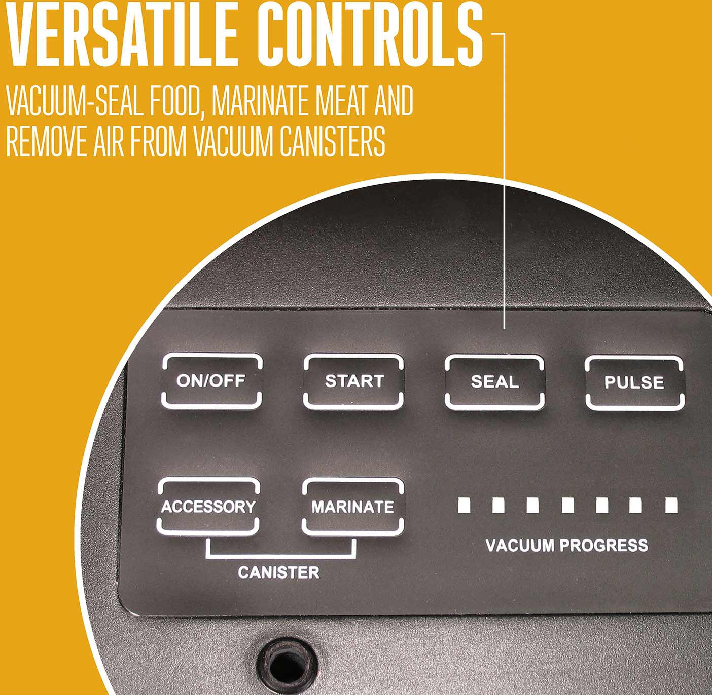 Vacuum seal food, marinate meats and remove air from vacuum canisters.