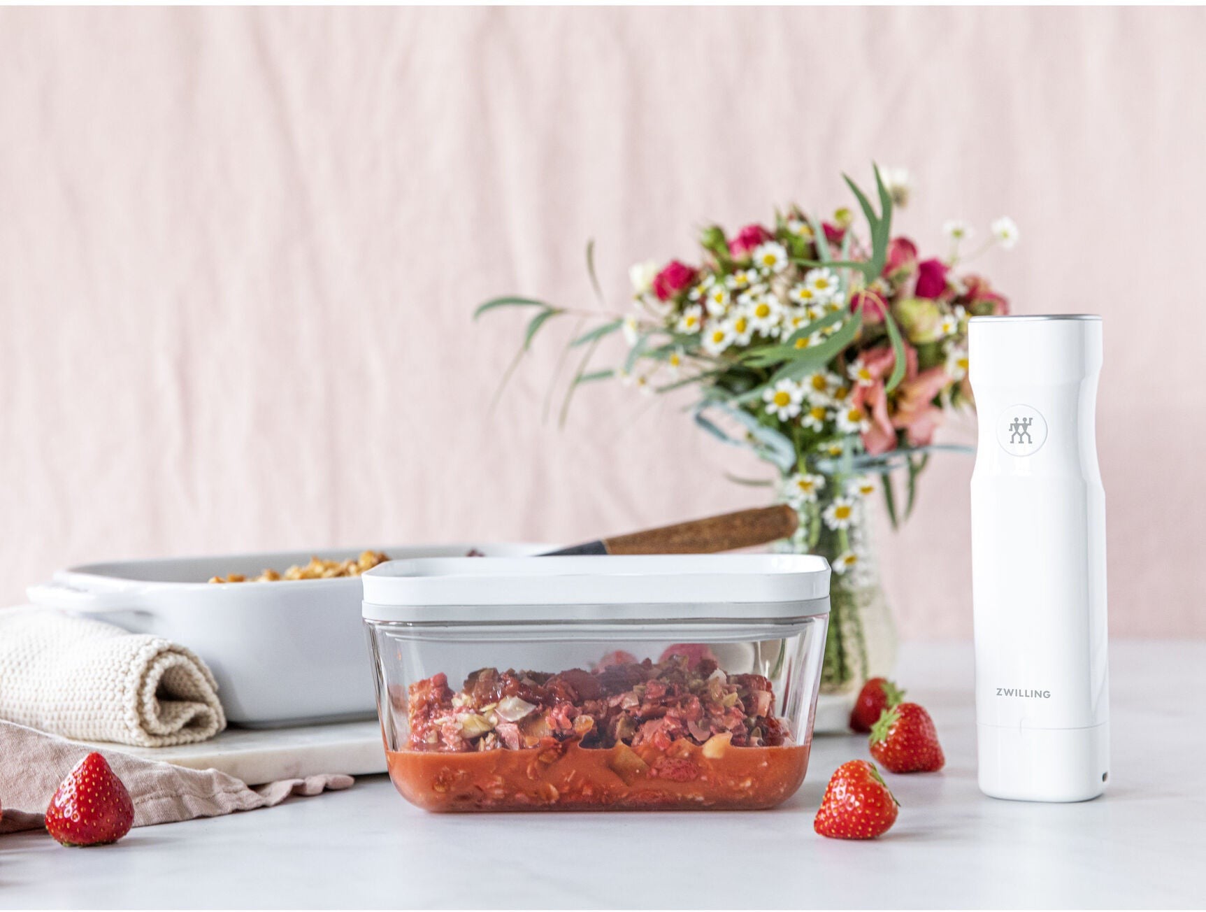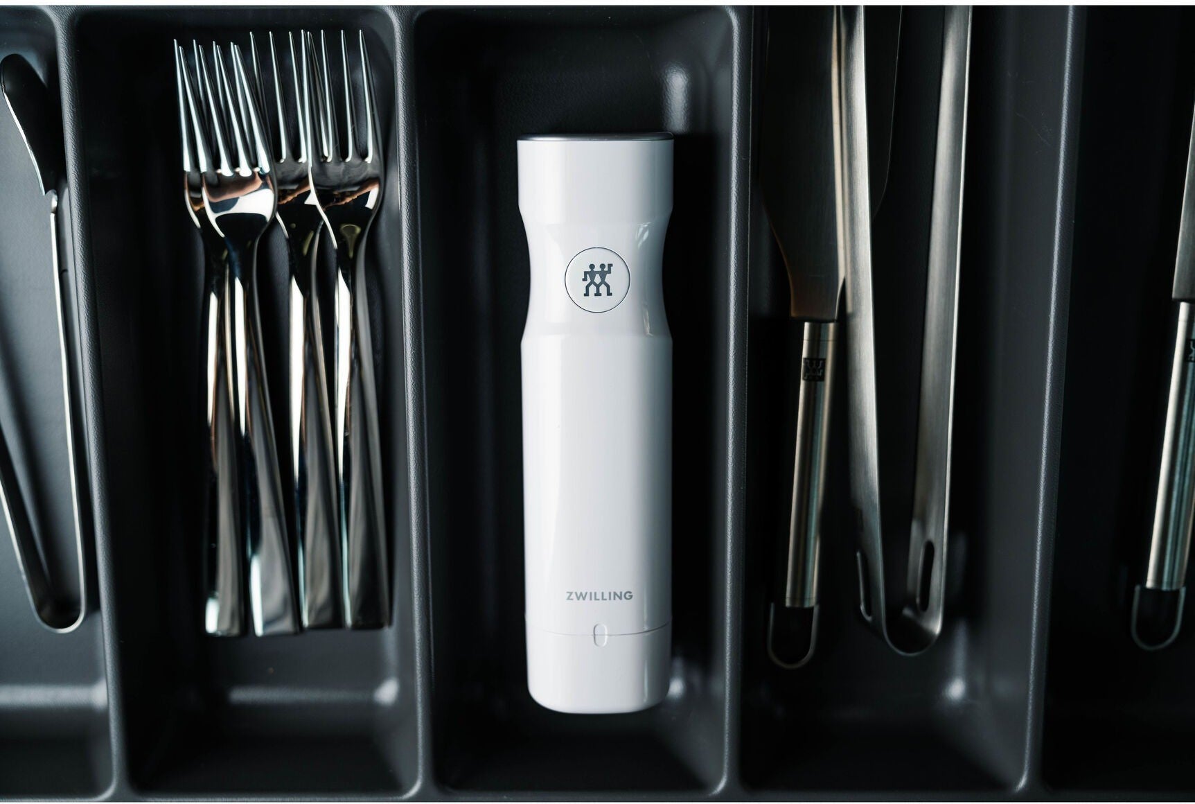 The Fresh & Save vacuum pump is at the heart of the smart storage system by ZWILLING. The sleek, quiet, cordless vacuum pump extracts the air out of our vacuum containers and bags in just seconds and safely preserves aromas and vitamins. It stops automatically once a sufficient vacuum has been created. Equipped with a long-life lithium-ion battery, the pump can be charged quickly using the included USB via the charging socket located on the pump.
