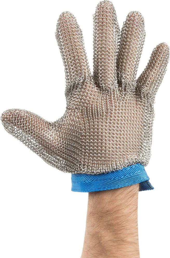 Made of 316 AISI type stainless steel individually welded rings, this glove provides superior strength. The steel mesh provides a strong covering that protects your hands so that you can work quickly and safely. The blue colored wrist strap makes it easy to identify the size of this glove with one quick glance. That way you can easily tell it apart from other similar ones if you have multiple sizes or types stored in your kitchen.