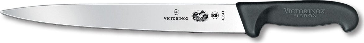 Ensure fast and efficient meal prep in your commercial kitchen with a Victorinox slicing knife! Victorinox products last up to 60% longer than typical knives, so you can count on the durability of this knife. Plus, the handle's contours ensure that the knife will fit comfortably in your hand as you tackle daily food preparation tasks. Whether you are quickly slicing meat in the kitchen or carving a turkey in a front-of-house display, this knife will get the job done.