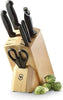 • Set includes: 4" paring knife, 6" boning knife, 8" bread knife, 10" slicing knife, honing steel rod, shears