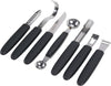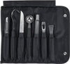 A necessary addition to your kitchen, the Victorinox 8 piece garnishing kit will accelerate any food preparation process! Whether peeling potatoes, coring apples, scooping melons, or zesting lemons, this sleek and modern garnishing kit addresses daily kitchen needs. Use the other tools to perfect your elegant presentations with butter curls, fruit zest slivers, and unique slicing designs. Mold butter into shapes and waves so it never looks boring next to a dinner roll again! Dress your steaks and fish with curls of citrus fruit zest, and shave off preparation time with a steel peeler and corer! The black vinyl case houses 7 quality steel garnish tools with black nylon handles, ideal for transport or small spaces.