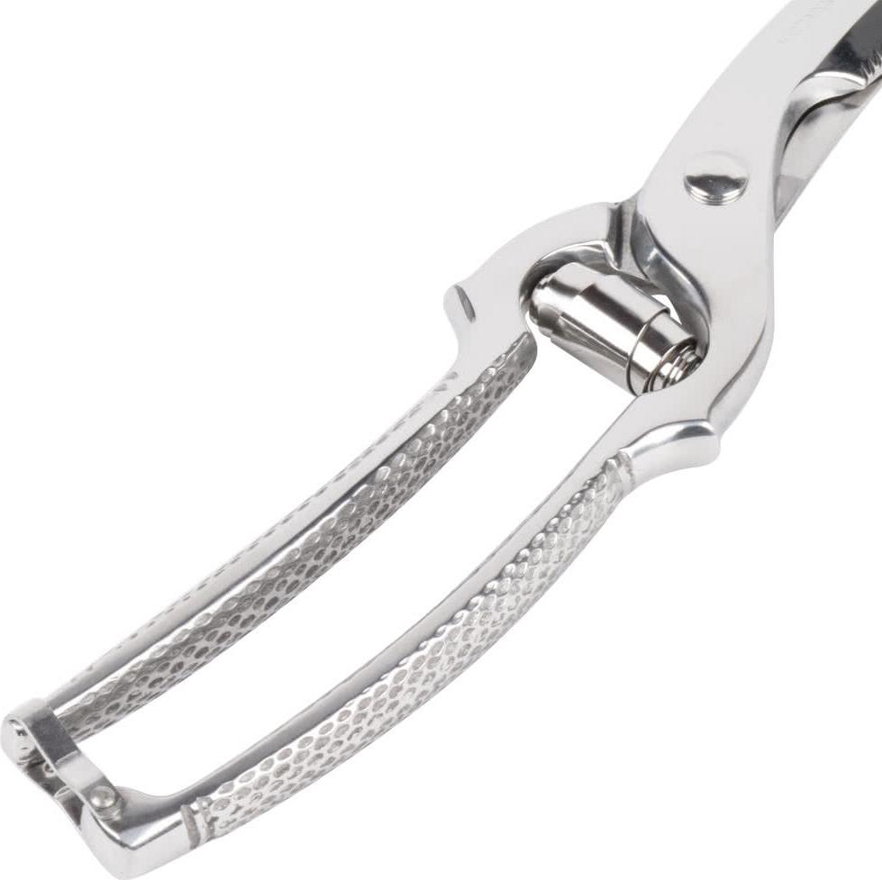 Bring these stainless steel poultry shears to your commercial kitchen to save time and effort in your meat prep process. The shears are specifically made to cut through poultry with ease, evident by their curved design and spring hinged handle. They are designed not only to tackle the tough process with ease, but to make it less strenuous on your chef or butcher as well.