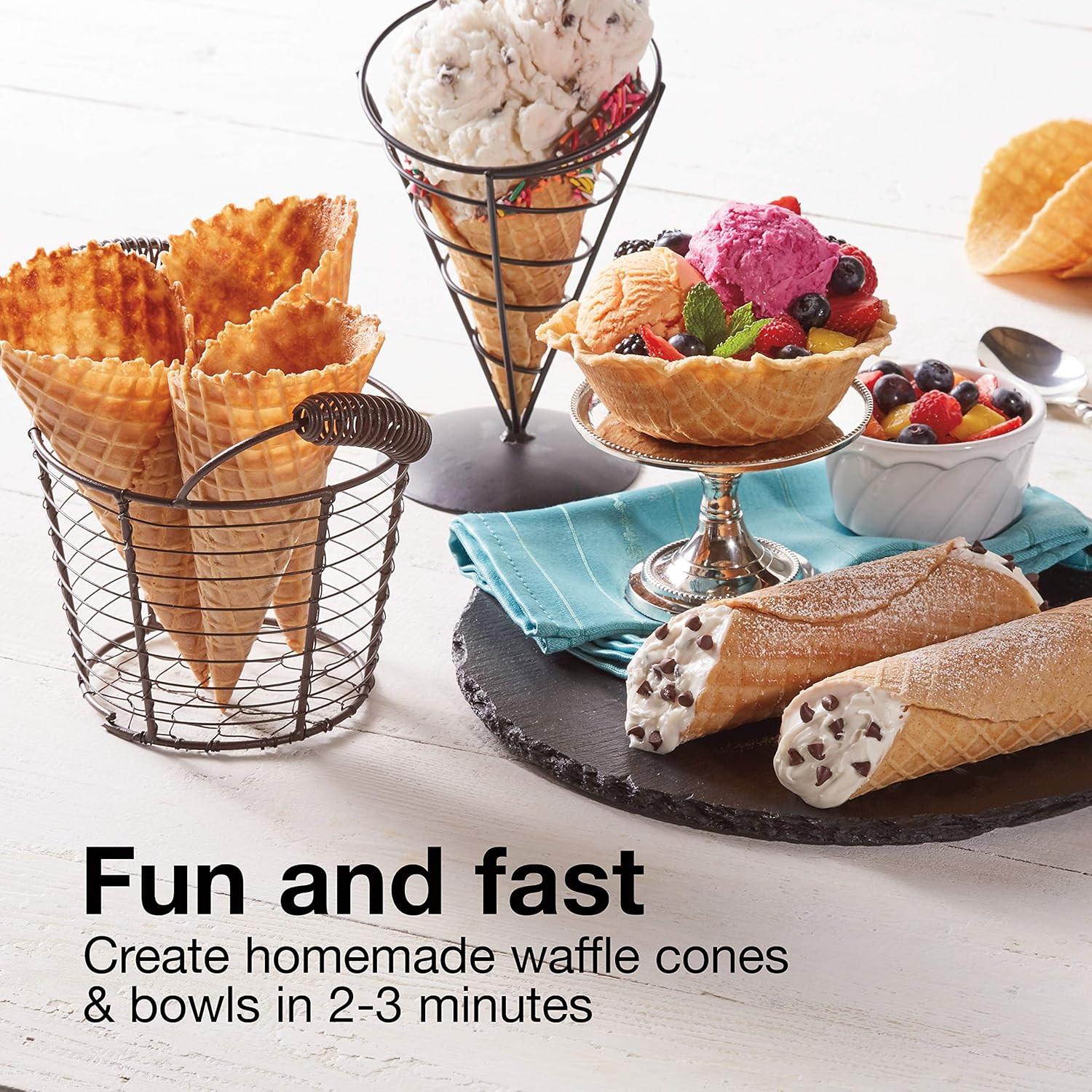 Cooks Crisp, Buttery Sugar Cones and Bowls Quickly in 2-3 Minutes