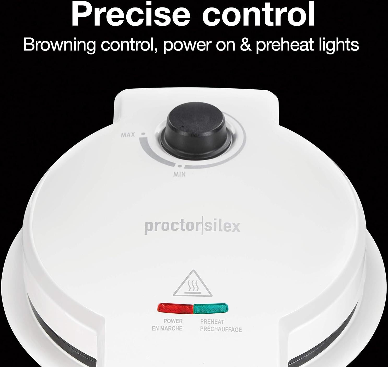- Adjustable Browning Control: A dial allows for precise control over the waffle's color and crispness, catering to individual preferences.