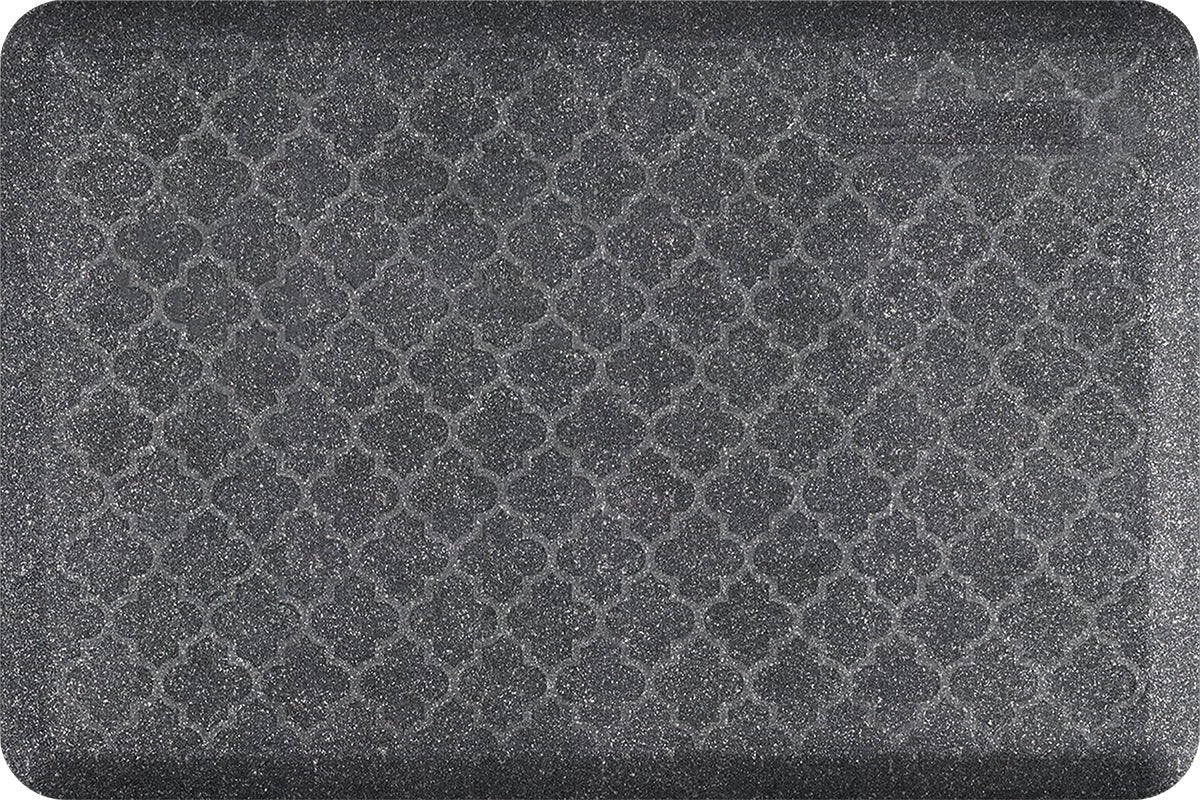 The Granite Trellis design of the mat adds a touch of sophistication and elegance to any space. With an intricate pattern reminiscent of a classic trellis motif, this mat brings a timeless yet contemporary aesthetic to your environment. The sleek and modern Steel hue of the mat enhances the visual appeal, creating a bold and sophisticated statement. Whether your décor is industrial, minimalist, or transitional, the Granite Trellis Steel Mat seamlessly integrates into the ambiance of your space, enhancing its aesthetic while providing exceptional functionality. Durability is a hallmark of WellnessMats products, and the Granite Trellis Steel Mat is no exception. Constructed from premium materials and engineered to withstand daily use, this mat is designed to deliver long-lasting performance. Its resilient surface resists punctures, stains, and abrasions, ensuring that it maintains its pristine appearance even in high-traffic areas. Additionally, the mat is inherently antimicrobial, inhibiting the growth of bacteria, mold, and mildew for a cleaner, healthier environment.