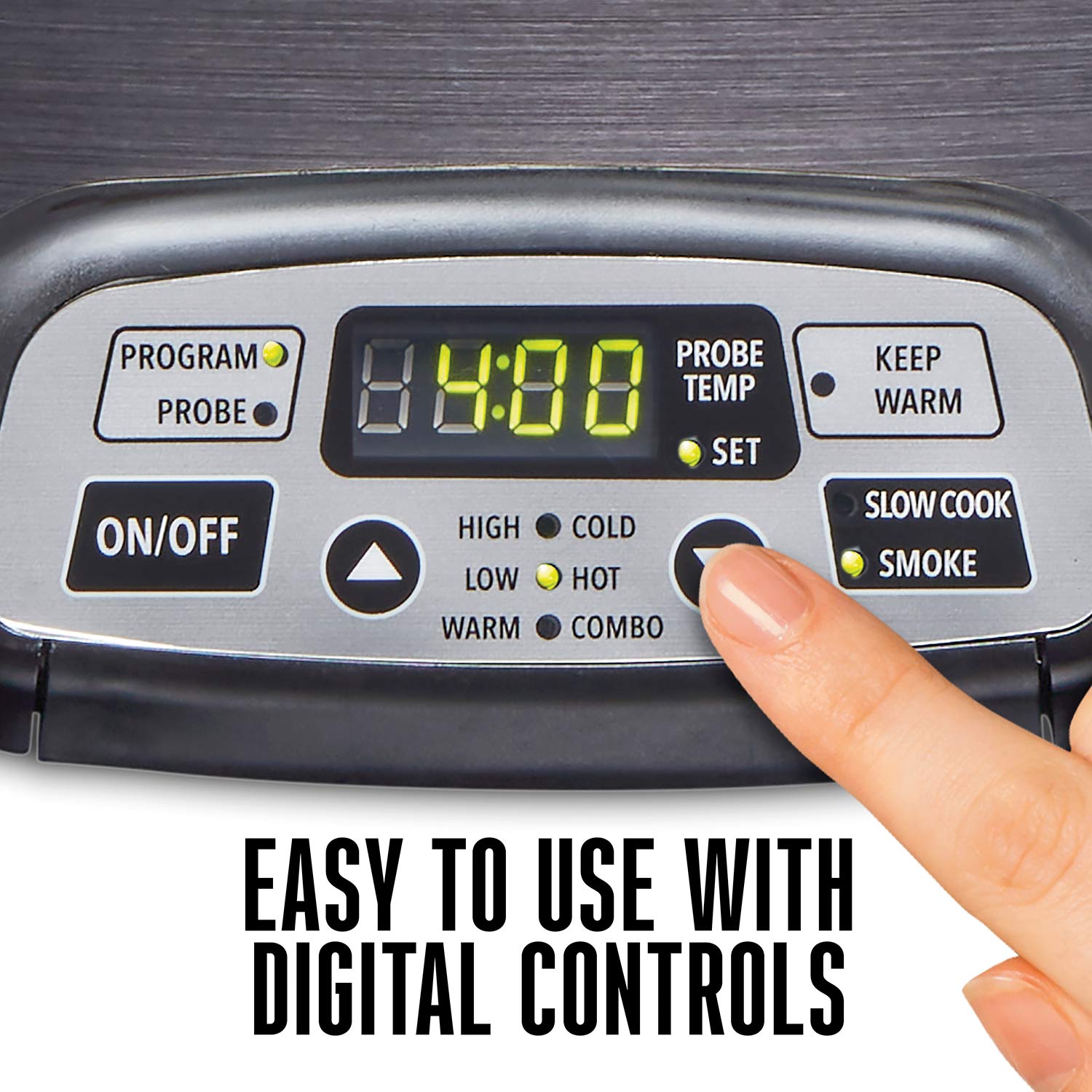 Digital controls are easy to use and make it simple to create tasty meals with minimal effort. Choose from 3 smoke settings or slowly cook your food on low or high. Simply set the timer, and the slow cooker automatically switches to Warm when cooking is complete, or automatically shuts off after cold smoking.