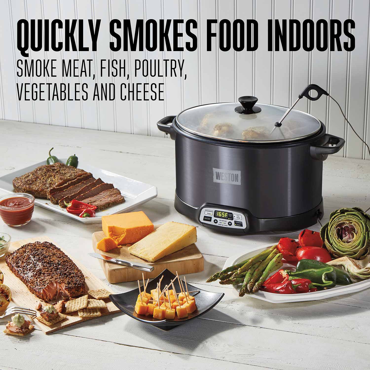 With the Weston 6-Quart Indoor Smoker and Slow Cooker, you can enjoy meat, cheese, and vegetables infused with authentic smokehouse flavor without the long wait. Smoke your favorite foods quickly and easily all year long right on your kitchen counter.