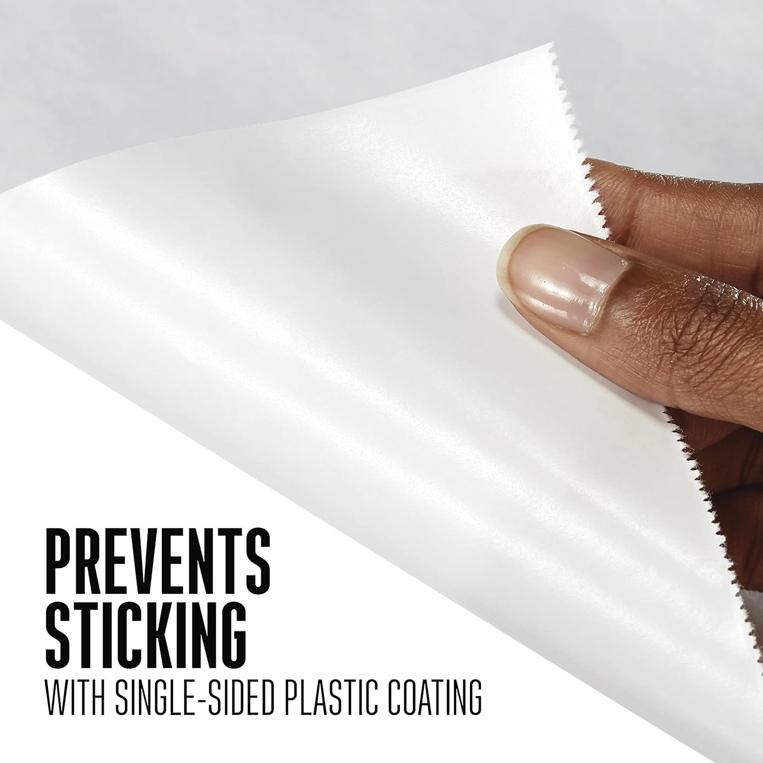 The single-sided plastic coating prevents sticking and seals in juices. Because the paper doesn't stick, unwrapping food is easy.