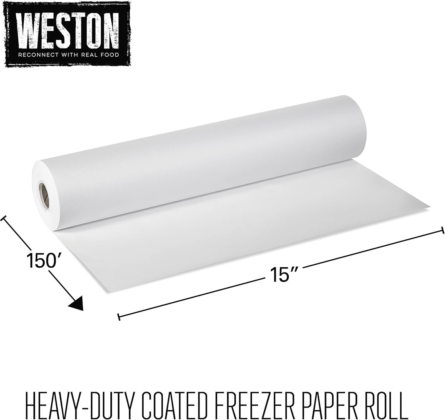 Weston Freezer Paper Cutter sold separately (83-4030-W). Large 15 x 150 ft roll with 1 inch core holds plenty of freezer paper to wrap and freeze a variety of foods.