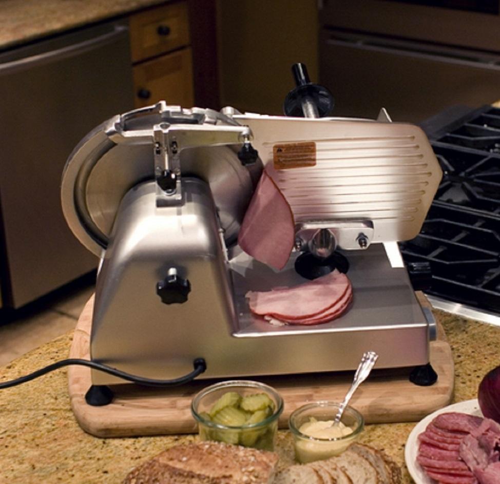 - Powerful and Reliable Motor: Equipped with a robust 0.4 HP (320-watt) motor operating on 120 volts and 60 Hz, this meat slicer delivers consistent and efficient slicing performance. The belt-driven motor ensures quiet operation and is easily replaceable for long-term use.