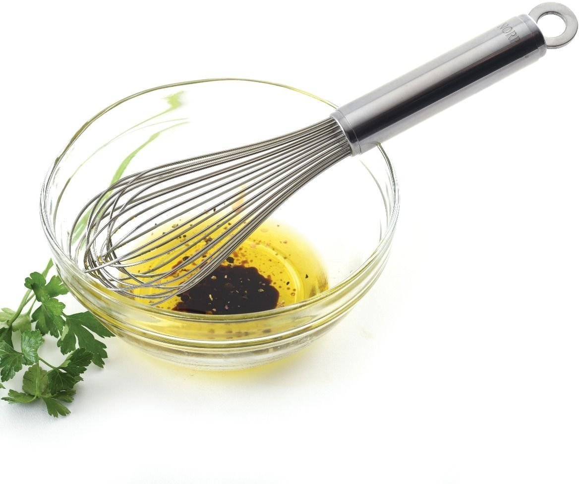 KRONA whisks are professional gauge high polish stainless steel with solid filled handles for a tight water seal. NSF approved for commercial and industrial use.