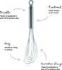 The flat shape of the whisk is especially suitable for stirring small quantities and for folding ingredients in gently when working with delicate mixes. Perfect for blending ingredients and beating eggs.