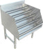 This liquor display rack has 5 stepped tiers for easy viewing. The stainless steel and galvanized construction provide durability for long-lasting use.