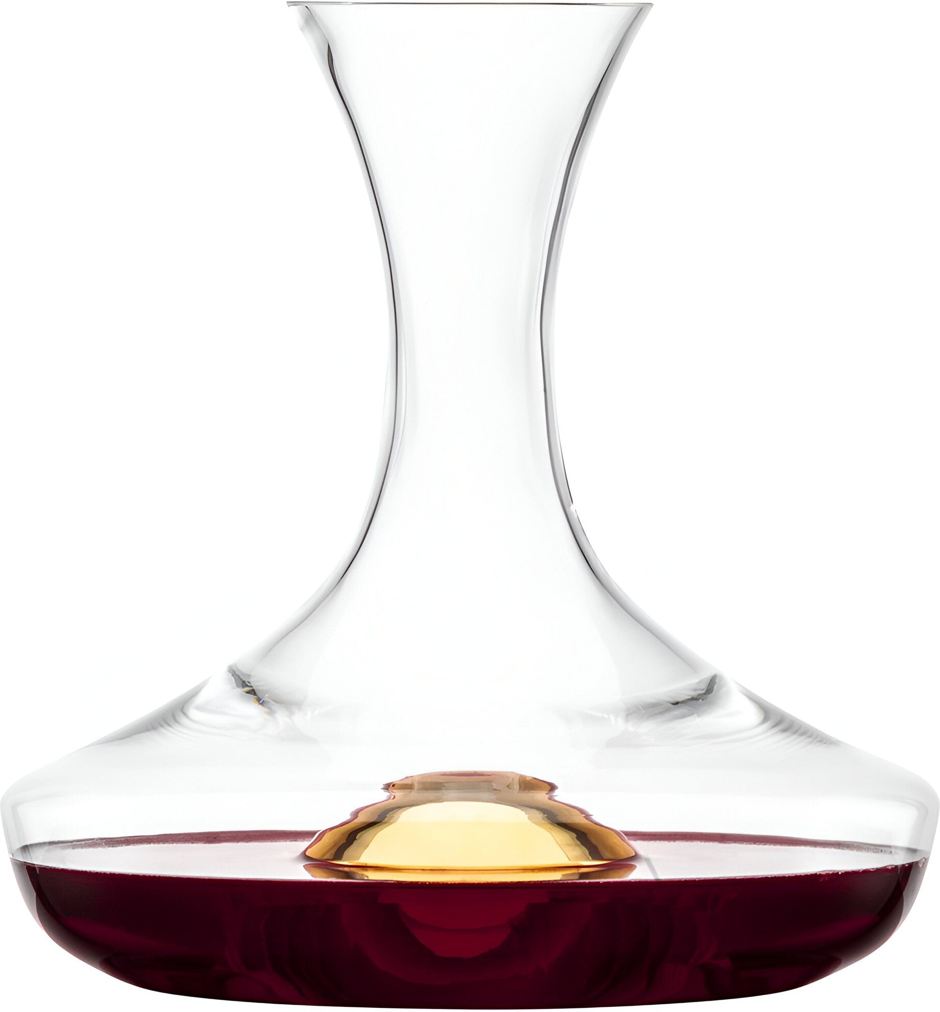 The Cuisivin Celebration Gold Decanter, a masterpiece designed to elevate your wine pouring experience to new heights. Crafted with precision and elegance, this red wine decanter boasts a host of features that combine functionality with aesthetic appeal. At its core, the Celebration Gold Decanter is engineered for ergonomic excellence. Its base features a unique indentation tailored to fit snugly into the palm, providing you with unparalleled control and ease when pouring your favorite wines. This thoughtful design element ensures a seamless pouring experience, enhancing both convenience and enjoyment. Adding a touch of luxury to your tabletop, the decanter showcases an exquisite 24K gold plated indentation, elevating its visual appeal and making it a stunning centerpiece for any occasion. The elegant design is further accentuated by the No Drip Effect©, a proprietary innovation that prevents wine drops from trickling down the exterior of the carafe, preserving both its pristine appearance and your table linens.