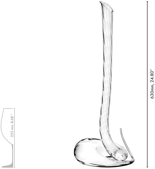 The Riedel Cobra Decanter Magnum is a stunning, handcrafted masterpiece designed to accommodate magnum-sized bottles (1.5L). Inspired by Riedel’s iconic Eve Decanter, this decanter features a serpentine design that provides double aeration, allowing both young and aged wines to develop their full character. Each handmade piece is meticulously crafted by master glassmakers, ensuring every decanter is unique. The elegant curves and optic detailing make it a functional work of art, perfect for serious wine enthusiasts and collectors.