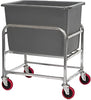 The Winholt 6-Bushel Stainless Steel Gray Bulk Mover Tub is a robust and versatile solution for transporting bulk materials in commercial and industrial environments. With a capacity of 500 lbs., this bulk mover is designed to handle heavy loads efficiently. The features an all-welded stainless steel construction, ensuring durability and resistance to corrosion, making it suitable for use in demanding conditions such as kitchens, warehouses, and manufacturing facilities. The mover is equipped with four 5″ swivel polyurethane casters, which provide smooth mobility and easy maneuverability, even when fully loaded. These casters are designed to withstand rigorous use and offer excellent resistance to wear, ensuring the bulk mover remains stable and easy to handle over time. The gray tub design is practical for various applications, from moving food products to industrial materials, offering a reliable and sanitary option for bulk transportation needs.