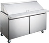 This Mega Refrigerated Prep Table provides ample storage space. It is constructed of stainless steel and features self-closing doors. Inserts are not included.