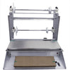 This wrapping machine features tough aluminum and stainless steel construction with an all-stainless wrapping surface for quick and easy clean up. This wrapper is equipped with extra large rubber feet to prevent sliding on any counter surface. This model features a solid-state controlled hot rod cut off bar and standard size hot plate with a non-stick cover.