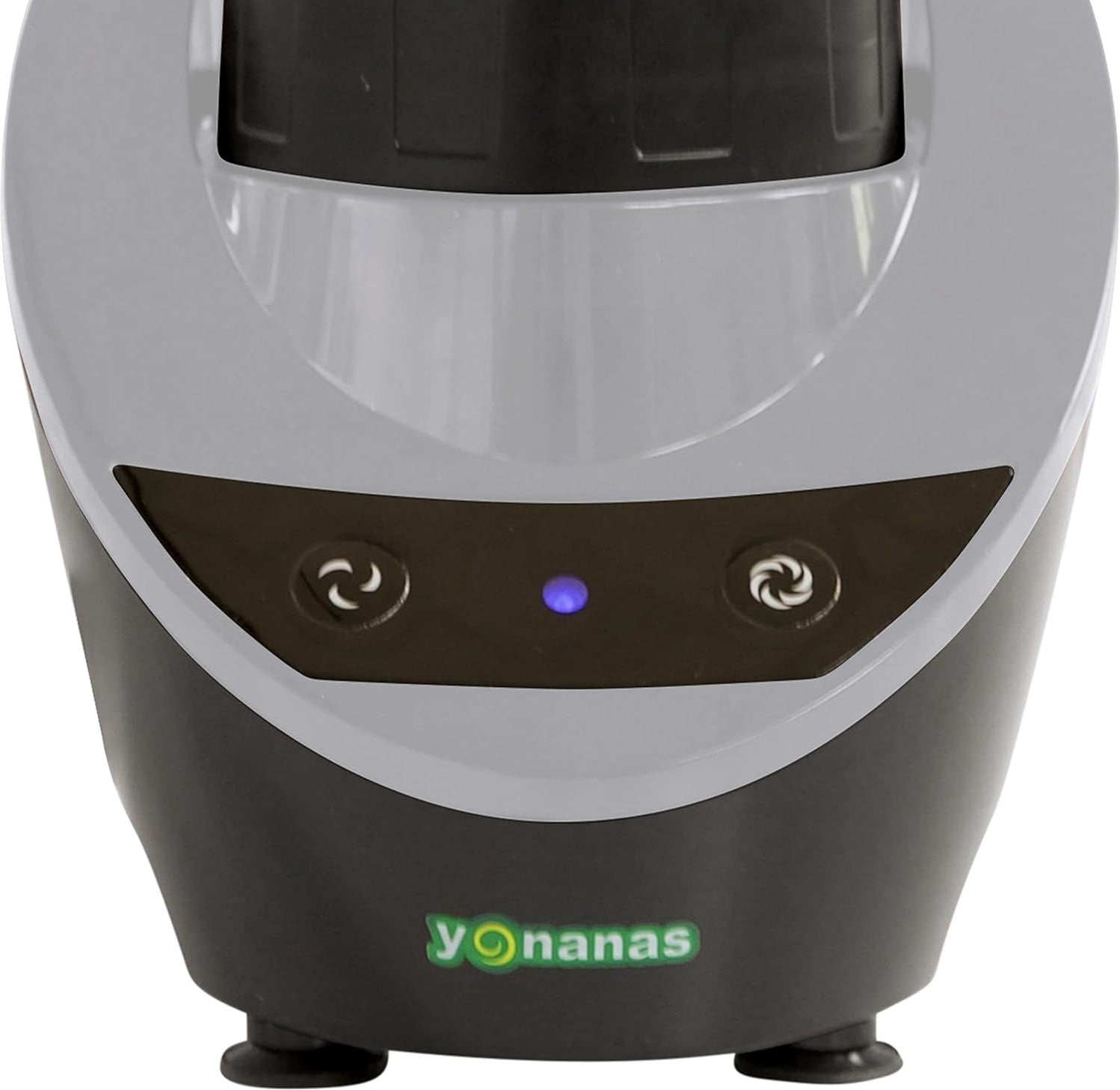The Yonanas Grey Personal Blender is a compact and versatile kitchen appliance designed for creating shakes, smoothies, mix drinks, and sauces. This 300-watt blender comes with a 13.5 oz (400ml) BPA-free blending cup, perfect for personal-sized servings. It's powerful enough to handle a variety of ingredients, making it ideal for quick and easy preparation of your favorite beverages and recipes. The blender includes a to-go lid, making it convenient for on-the-go use. The low- and high-speed touch-button settings provide ease of use, allowing you to blend ingredients to your desired consistency. Additionally, the cup, blades, and lid are dishwasher-safe, ensuring effortless cleaning. The Yonanas Personal Blender is a great addition to any kitchen, offering a quick and convenient way to enjoy healthy and delicious drinks.