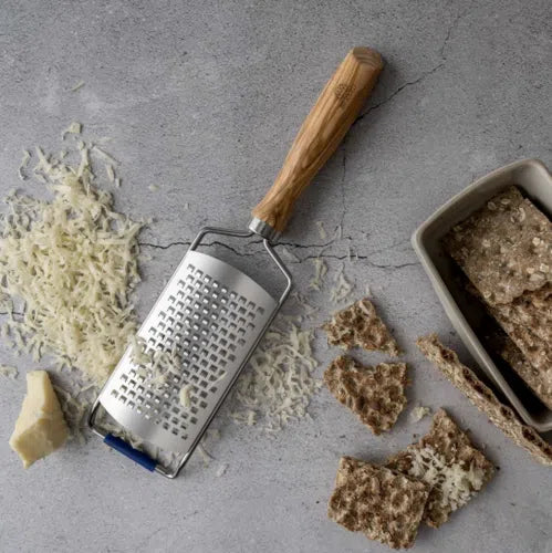 The Berard 6.4" Zester Grater with Fine Olivewood Handle is an elegant and functional kitchen tool perfect for zesting citrus fruits, grating hard cheeses, and finely shredding spices like nutmeg. Crafted from high-quality materials, this zester features a fine, sharp grating surface for precise, effortless zesting, and a beautifully crafted olivewood handle for a comfortable grip and a touch of sophistication in your kitchen.
