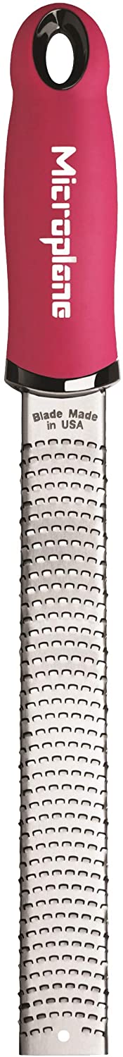 Updated handles for a Classic Zester This version of the classic Microplane zester/Cheese Grater has a premium soft-touch handle and non-scratch end tabs. This tool grates even the hardest Parmesan Reggiano as well as other hard cheeses into fine lacy wisps. Ideal for topping your favourite spaghetti and meatballs or a Caesar salad. It’s also wonderful for effortless citrus zesting to add natural flavours to a lemon crème brulee or a basic vinaigrette.