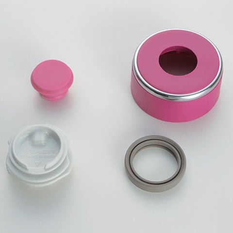 - 2-step method for disassembly and reassembly of lid ensures no accidental leaks, and helps prevent the loss of parts