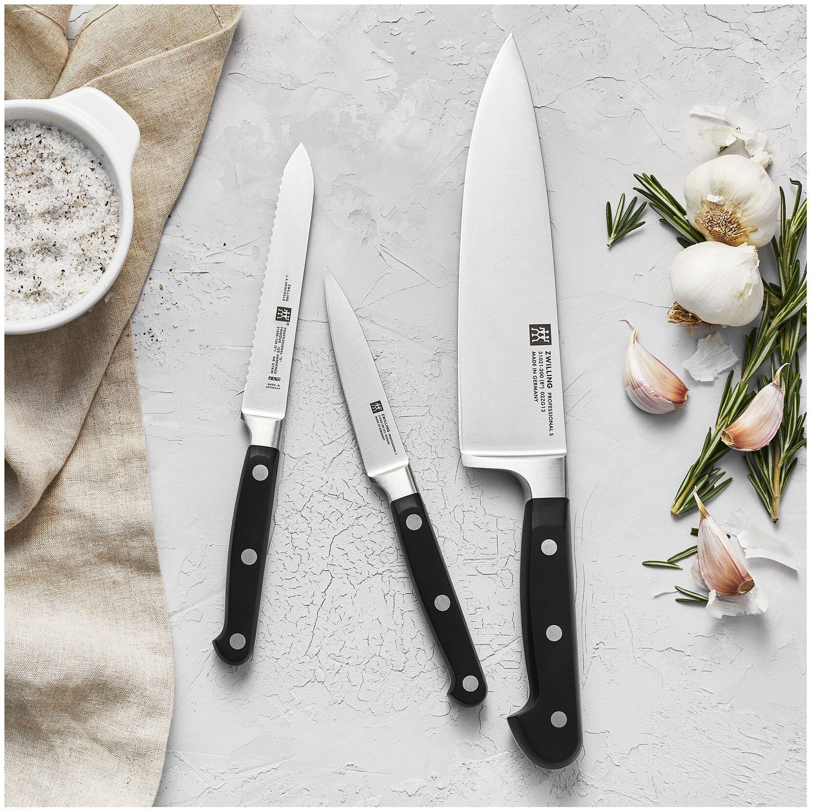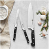 PROFESSIONAL "S" are the classic knives for the professional kitchen. The knives are made of proprietary special formula steel that has been perfected for over 285 years. Combined with ZWILLING's signature ice-hardening technique, these FRIODUR blades are harder, sharper, they will NOT STAIN or chip and they retain their sharpness longer. Honed and hand-finished by the most skilled artisans, the knives' laser-controlled edge is incredibly sharp. The sturdy bolster provides the right balance and acts as a finger guard. Precision-forged from a single piece of solid steel, these three rivet handle knives deliver optimum balance and safe handling. Professional Chef's worldwide trust the tradition and quality of these impressive knives.