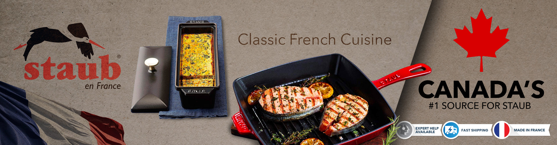 Staub is shipped free across Canada on orders over $149. Staub is made in and imported from France, and specializes in exceptional high quality enamel cast iron products, including cocottes, also known as dutch ovens, braziers, skillets and more. Their unique self-basting lid technology is exclusive to Staub, and it is no surprise to find out that Staub is the choice of prestigious chef's in both restaurants and homes across the globe.
