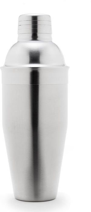 Amaze your friends with your barman talents as you brew your favorite cocktails and drinks using this satin finish stainless steel cocktail shaker. Includes a cap and built-in strainer. It's great for that martini 'Shaken not Stirred,' and are amazing for mixing homemade salad dressings.