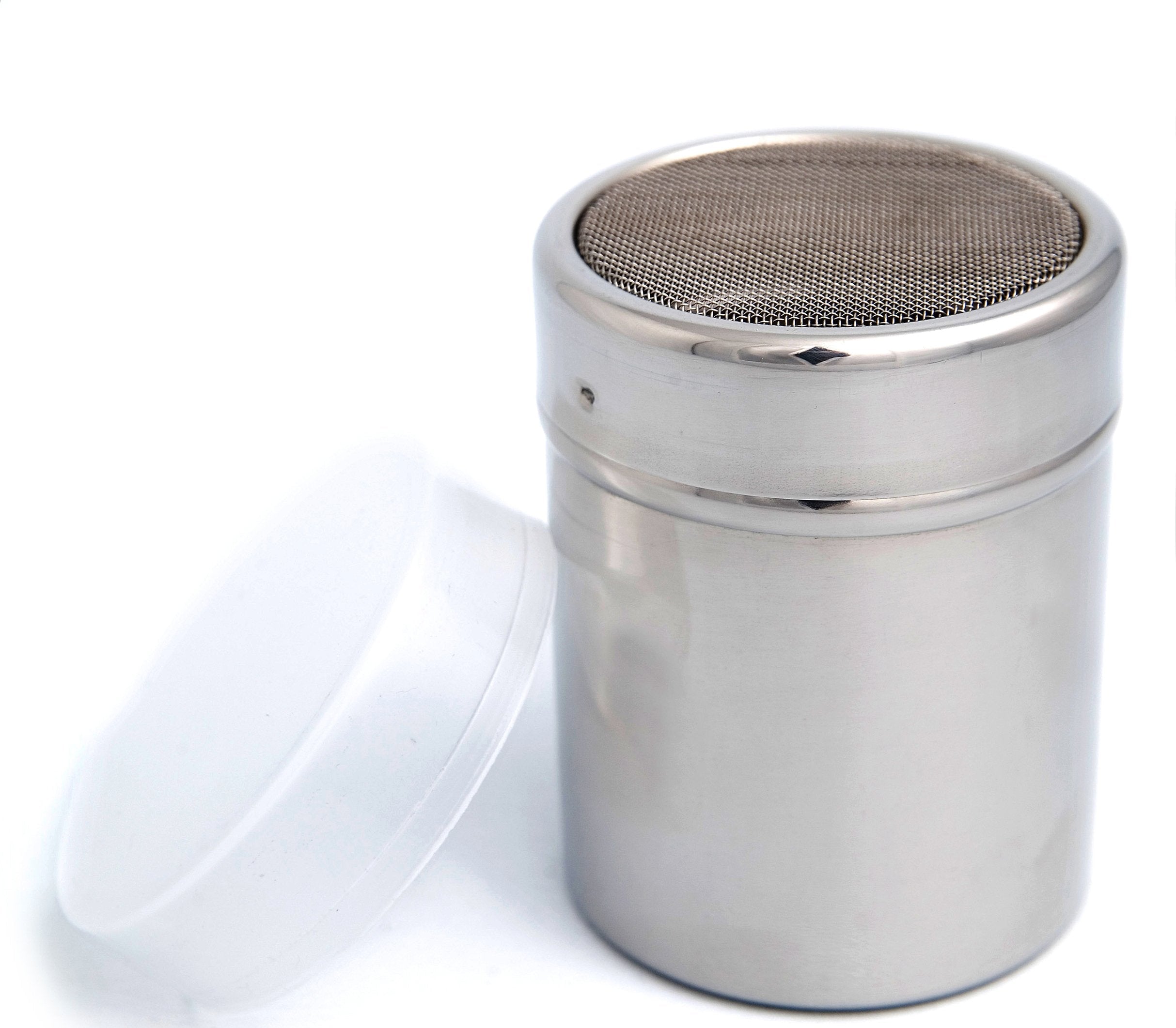 Sprinkle a little cocoa, or sprinkle a little cinnamon - this stainless steel dispenser with a mesh screw on top is a great addition to any kitchen.