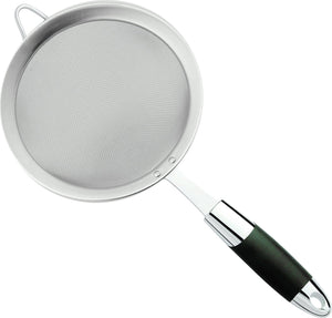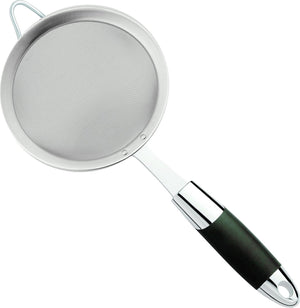 Wire mesh strainer in stainless steel with a soft touch rubberized handle for a sure grip.