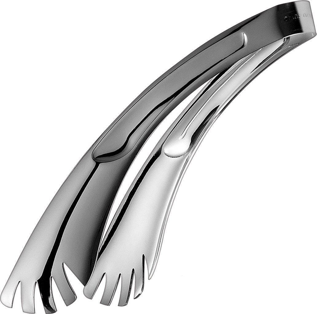 Ultra high polished 18/10 stainless steel spaghetti tongs for the elegantly set table.
