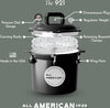 Only All American 1930 Pressure Cooker/Canners feature an exclusive, precision machined “metal-to-metal” sealing system. Positive action clamping locks align the cover to the base, forming a steam-tight seal. Since the seal does not use a gasket, the cover can be easily opened and closed. All American 1930 Pressure Cooker/Canners make it easy to can fish, meat, vegetables and fruits – it’s the only method the USDA recommends for low-acid foods. All models feature a precision machined regulator weight for accurate pressure control and an easy-to-read, 8.5 x 5.5″ Instruction and Recipe Book. The Model 921 is suitable for gas, electric, or flat-top stoves. If you do use it on a flat top stove, use caution not to drop the unit from any distance onto the stove surface. This could cause damage to the stovetop for which Wisconsin Aluminum Foundry will not be liable.