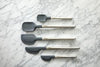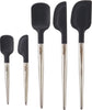 Durable, versatile tools for prepping and baking. Mix, fold, spread, and scrape without worry with these durable, sleek Silicone Tools. This set includes a spoonula, spatula, and scraper, as well as a mini spoonula for folding smaller batches and a mini scraper, perfect for small jars. The dual grip stainless steel handles allow for excellent leverage, while the platinum silicone heads are firm enough to scrape but can flex easily to reach into corners. Safe for use with nonstick cookware and bakeware, with heat up to 450 degrees F, and for cleaning in the dishwasher, these tools are just as durable as they are convenient.