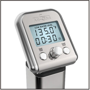 The All-Clad Sous Vide Immersion Circulator allows you to create perfectly-cooked, and juicy results that are never over cooked. The thermal circulator continuously pumps water at programmed temperature to ensure consistent cooking temperatures set with .1 degree accuracy. The sous vide circulator offers a professional-style precise temperate control with a quiet and compact design for the ultimate cooking experience. The unit’s adjustable clamp allows you to secure your circulator to whatever cooking vessel you prefer, while the easy-to-use control panel displays real time temperature and timer to conveniently monitor your progress. Satisfy your passion for cooking and getting perfect results with the All-Clad Sous Vide Immersion Circulator. CONVENIENT Countdown timer to track the progress. EASY TO USE Easy to read LED displays real time temperature and timer to monitor your progress. INTUITIVE / PRECISE Professional style precise temperate control. DESIGN Beautiful, high gloss All-Clad stainless steel finish. DURABILITY Easy to use adjustable clamp to secure your circulator to whatever cooking vessel you prefer