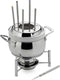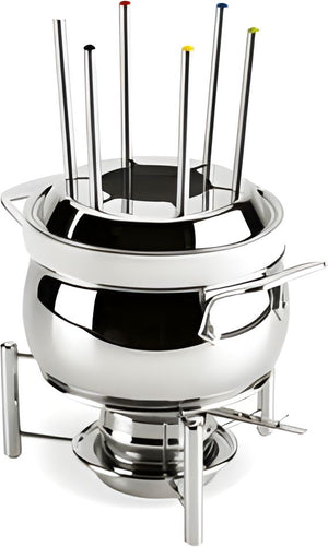 Crafted with high-quality 18/10 stainless steel, the set includes a sturdy stand, fuel holder, lid, and six color-coded forks for easy organization. The stainless steel lid holds the forks upright, eliminating clutter and enhancing safety during use. Its sleek polished exterior, warp-resistant durability, and dishwasher-safe design make it ideal for both everyday cooking and special occasions.