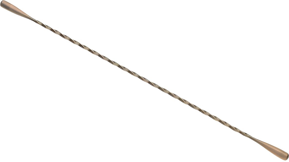 The Barfly M37020ACP 13.1" Antique Copper-Plated Finish Double End Stirrer is an essential tool for mixologists seeking precision and style in crafting cocktails. With dual weighted ends, this stirrer ensures smooth stirring and mixing of ingredients, making it a versatile addition to any bartender's toolbox. Whether you're concocting specialty martinis, mojitos, or classic drinks like long island iced teas, whiskey sours, and screwdrivers, this double end stirrer provides the flexibility needed to create a wide range of cocktails. The stirrer's twisted design not only adds a touch of elegance but also enhances control and grip, allowing for comfortable and confident handling during the mixing process. Its one-piece construction contributes to greater durability and sanitation, ensuring a reliable and hygienic tool for professional use.