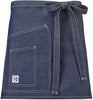 The Barfly 15.75" x 28.25" Metro Edge Stellar Indigo Cotton Denim Waist Apron, Set of 1. Crafted with herringbone denim, this apron effortlessly blends style with functionality. The angled tops of the two pockets ensure easy access to your essentials while working. Contrast stitching adds a touch of character to the apron's design. Made from 100% cotton denim, this apron is both durable and comfortable to wear. Its extra-long 44" ties, reinforced with bar tacking, provide a secure and adjustable fit for all-day wear. With dimensions of 28 3/4 x 16 1/4", it offers ample coverage and protection.