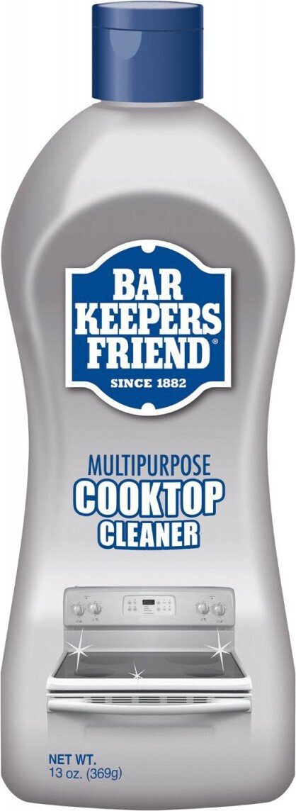 Bar Keepers Friend Cooktop Cleaner is formulated to remove tenacious cooked-on residues from glass surfaces. Use it to quickly clean smooth glass or ceramic surfaces, such as your glass cooktop, and your glass and ceramic cookware. In addition, you can use BKF Cooktop cleaner to buff out the utensil marks that accumulate on serving plates.