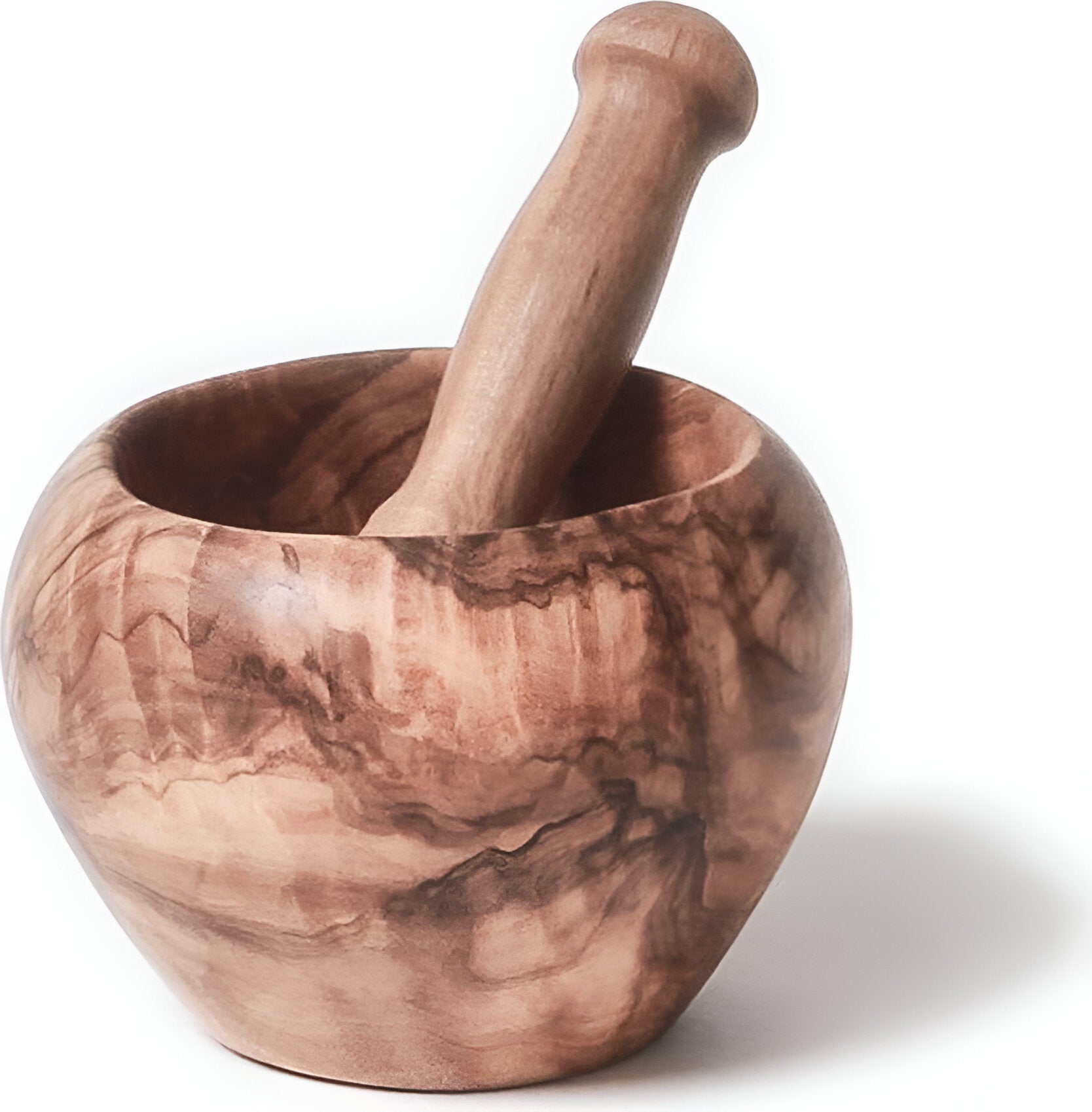 - Exquisite Olivewood Craftsmanship: Meticulously crafted from select Mediterranean olive wood, this mortar and pestle set exudes the natural beauty and exceptional durability for which olive wood is renowned. It's a work of art in its own right.