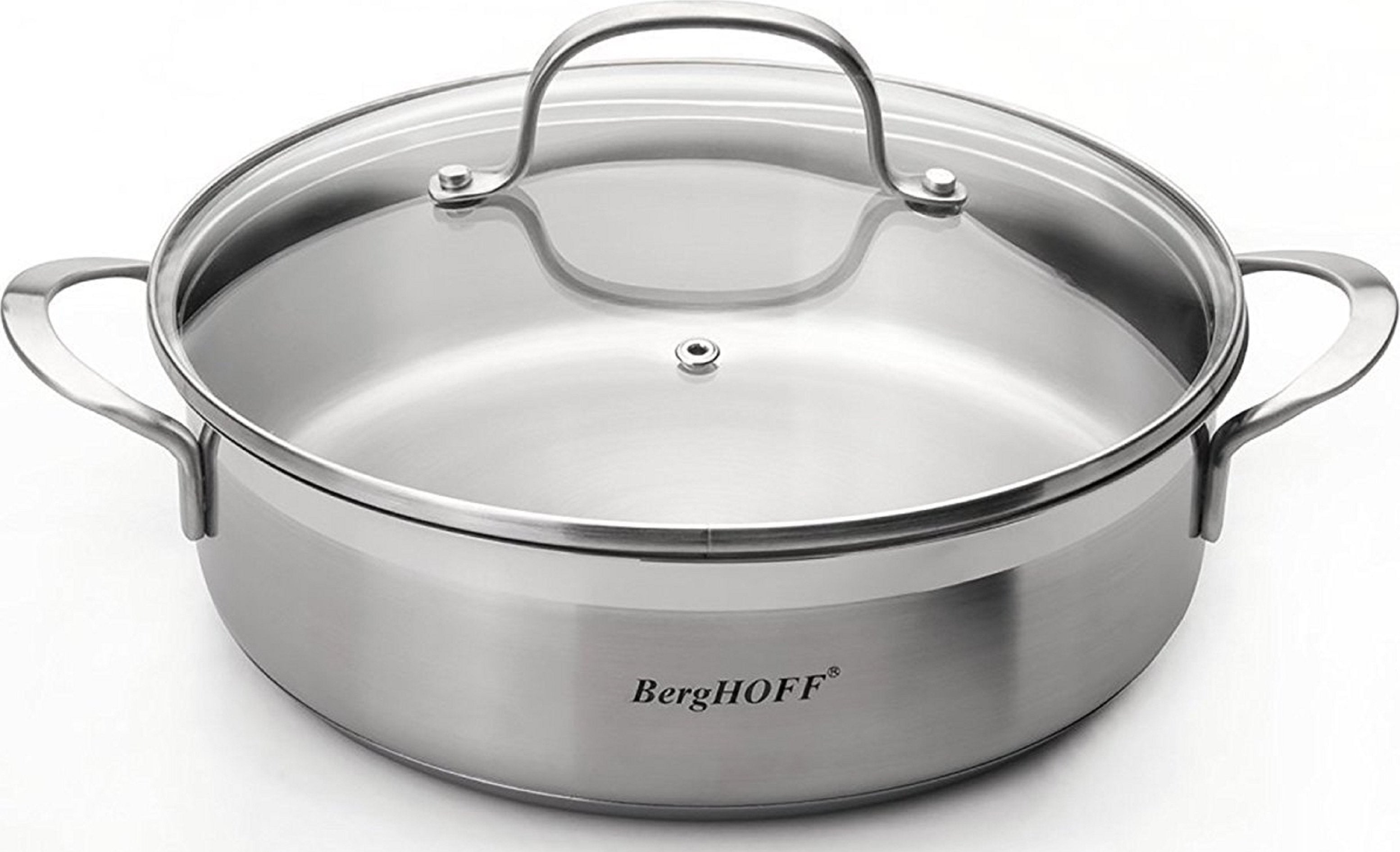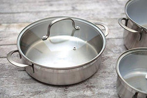 Turn any cooking job into an easy, mess-free breeze with this Studio Bistro, 2.9 Qt., 10" covered deep skillet. Made from high-quality stainless steel, this skillet will prove a durable, reliable addition to your cookware for years to come. Features a glass lid to easily monitor your meals and two wide handles for a safe, secure grip even with oven mitts. No-drip rims keep your counters clean during draining. Dishwasher safe.