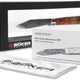 The blanks are classically made of brass, while the bolsters are made of nickel silver. The blade made of hand-forged stainless Damascus by Chad Nichols from Mississippi in the USA convinces with 200 layers and the pattern Scrambled. It locks securely with a backlock and harmonizes beautifully with the finely grained burl birch scales, stained in the noble shade of amboina red. Handcrafted in the Boker Manufactory in Solingen and strictly limited to 999 knives worldwide. Delivered with the reissued historical Boker tree emblem, certificate and noble floating display.
